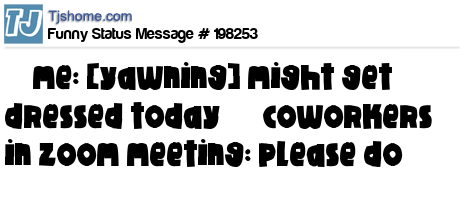X says me: [yawning] might get dressed today coworkers in zoom meeting: please do