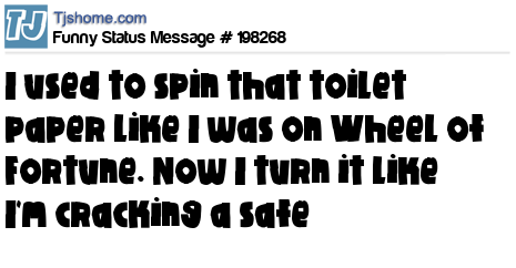 X says I used to spin that toilet paper like I was on Wheel of Fortune. Now I turn it like I'm cracking a safe