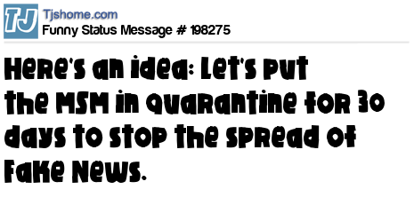 X says Here's an idea: Let's put the MSM in quarantine for 30 days to stop the spread of Fake News.