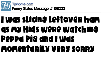X says I was slicing leftover ham as my kids were watching Peppa Pig and I was momentarily very sorry