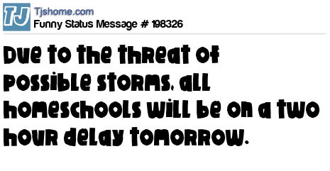 X says Due to the threat of possible storms, all homeschools will be on a two hour delay tomorrow.