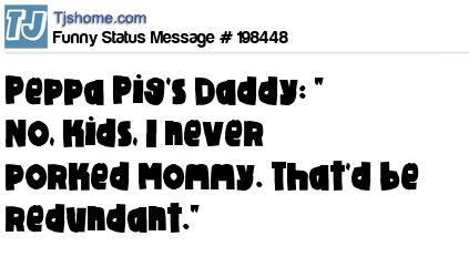 X says Peppa Pig's Daddy: " No, kids, I never porked Mommy. That'd be redundant."