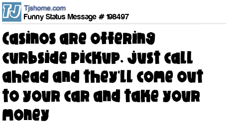 X says Casinos are offering curbside pickup. just call ahead and they'll come out to your car and take your money