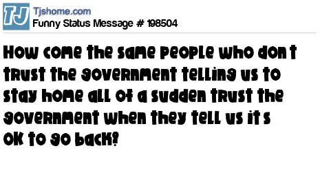 X says How come the same people who don’t trust the government telling us to stay home all of a sudden trust the government when they tell us it’s OK to go back?