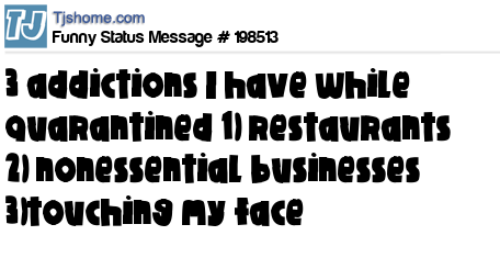 X says 3 addictions I have while quarantined 1) restaurants 2) nonessential businesses 3)touching my face