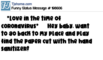 X says *Love in the time of coronavirus* Hey baby, want to go back to my place and play find the paper cut with the hand sanitizer?