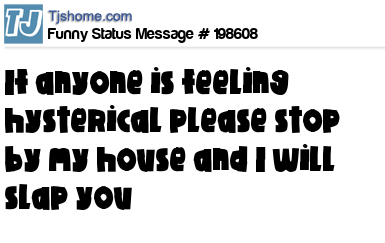 X says If anyone is feeling hysterical please stop by my house and I will slap you