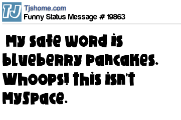 X My safe word is blueberry pancakes. Whoops! this isn't MySpace.