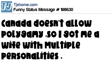 X says Canada doesn't allow polygamy ,so I got me a wife with Multiple personalities .
