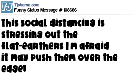 X says This social distancing is stressing out the flat-earthers I’m afraid it may push them over the edge!