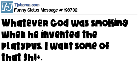 X says Whatever God was smoking when he invented the platypus, I want some of that $h!+.