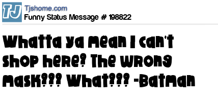 X says Whatta ya mean I can't shop here? The wrong mask??? What??? -Batman