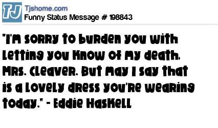 X says "I'm sorry to burden you with letting you know of my death, Mrs. Cleaver. But may I say that is a lovely dress you're wearing today." - Eddie Haskell