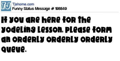 X says If you are here for the yodeling lesson, please form an orderly orderly orderly queue.