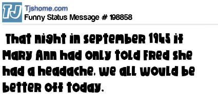- # 188041 If on that certaint night in December 1945. Mary Anne said not tonight Fred, I have a headache. We all would be better off today.