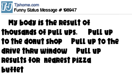 X says My body is the result of thousands of pull ups. Pull up to the donut shop Pull up to the drive thru window Pull up results for “nearest pizza buffet”
