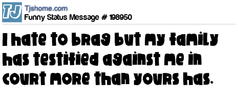 X says I hate to brag but my family has testified against me in court more than yours has.