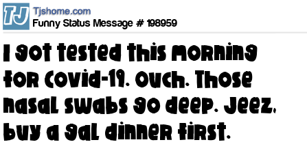 X says I got tested this morning for Covid-19. Ouch. Those nasal swabs go deep. Jeez, buy a gal dinner first.