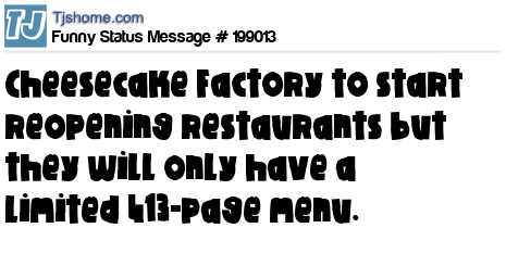 X says Cheesecake Factory to start reopening restaurants but they will only have a limited 413-page menu.