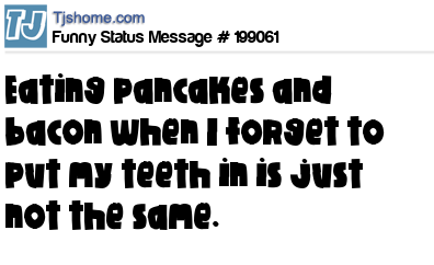 X says Eating pancakes and bacon when I forget to put my teeth in is just not the same.