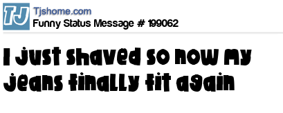 - # 192077 I shaved and now I can fit into my smaller jeans.