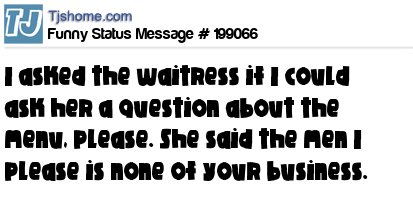 X says I asked the waitress if I could ask her a question about the menu, please. She said the men I please is none of your business.