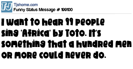 X says I want to hear 99 people sing 'Africa' by Toto. It's something that a hundred men or more could never do.