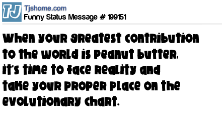 X says When your greatest contribution to the world is peanut butter, it's time to face reality and take your proper place on the evolutionary chart.