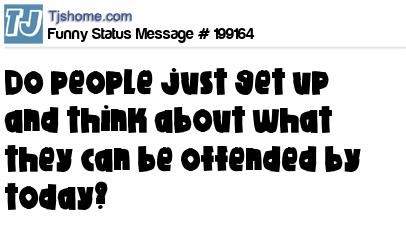 - # 141123 People are just waiting to get offended. I'm offended that you're allowed to breathe. :-)