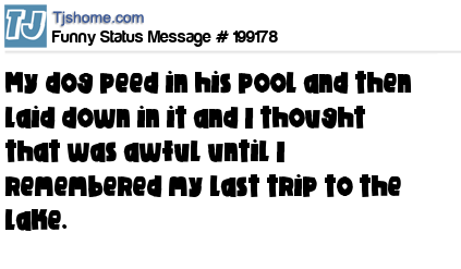 X says My dog peed in his pool and then laid down in it and I thought that was awful until I remembered my last trip to the lake.