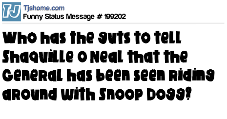 X is Who has the guts to tell Shaquille O’Neal that the General has been seen riding around with Snoop Dogg?