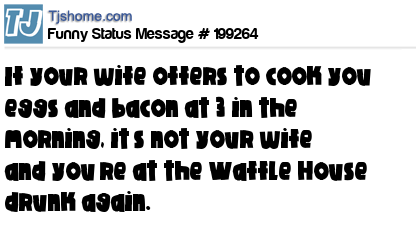X says If your wife offers to cook you eggs and bacon at 3 in the morning, it’s not your wife and you’re at the Waffle House drunk again.