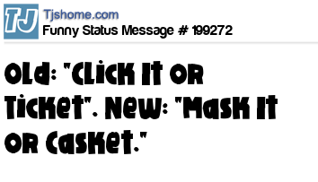 X says Old: "Click It or Ticket". New: "Mask It or Casket."