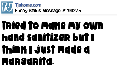 X is Tried to make my own hand sanitizer but I think I just made a margarita.