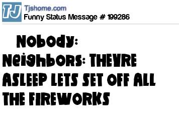 X says Nobody: Neighbors: THEYRE ASLEEP LETS SET OFF ALL THE FIREWORKS
