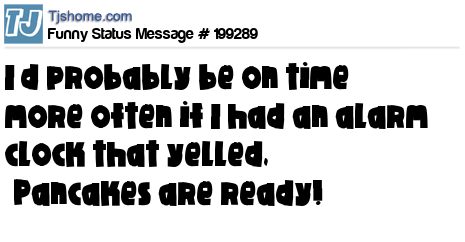 X says I’d probably be on time more often if I had an alarm clock that yelled, “Pancakes are ready!”