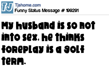 X says My husband is so not into sex, he thinks foreplay is a golf term.