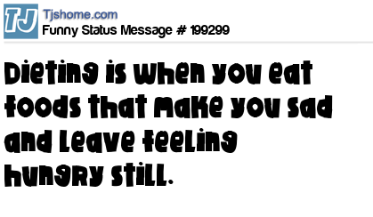 X says Dieting is when you eat foods that make you sad and leave feeling hungry still.
