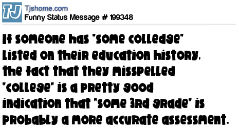 X says If someone has "some colledge" listed on their education history, the fact that they misspelled "college" is a pretty good indication that "some 3rd grade" is probably a more accurate assessment.