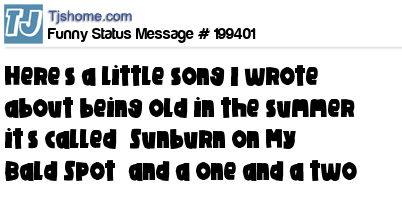X says Here’s a little song I wrote about being old in the summer it’s called “Sunburn on My Bald Spot” and a one and a two
