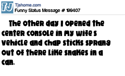 X says The other day I opened the center console in my wife’s vehicle and chap sticks sprang out of there like snakes in a can.
