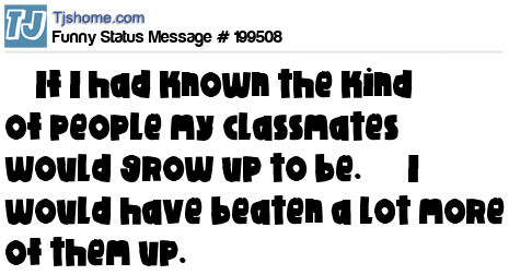 X says If I had known the kind of people my classmates would grow up to be. I would have beaten a lot more of them up.
