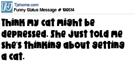 X says Think my cat might be depressed. She just told me she's thinking about getting a cat.
