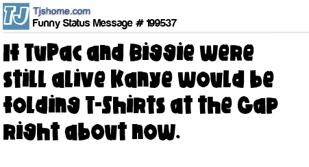 - # 141649 If TuPac and Biggie were still alive Kanye would be folding T-shirts at the Gap right now.