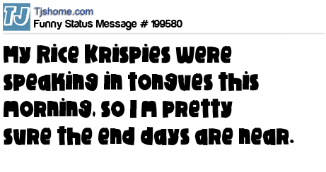 X says My Rice Krispies were speaking in tongues this morning, so I’m pretty sure the end days are near.