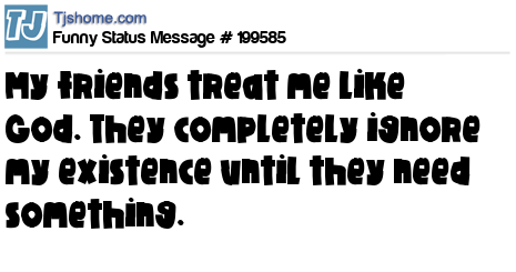 X says My friends treat me like God. They completely ignore my existence until they need something.