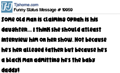 X some old man is claiming Oprah is his daughter.... I think she should atleast interview him on her show. Not because he's her alleged father but because he's a black man admitting he's the baby daddy!