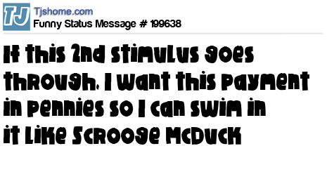 X says if this 2nd stimulus goes through, I want this payment in pennies so I can swim in it like Scrooge McDuck