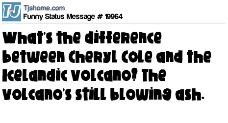 X What's the difference between Cheryl Cole and the Icelandic volcano? The volcano's still blowing ash.