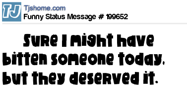 - # 199678 Sure I might have bitten someone today, but they deserved it.